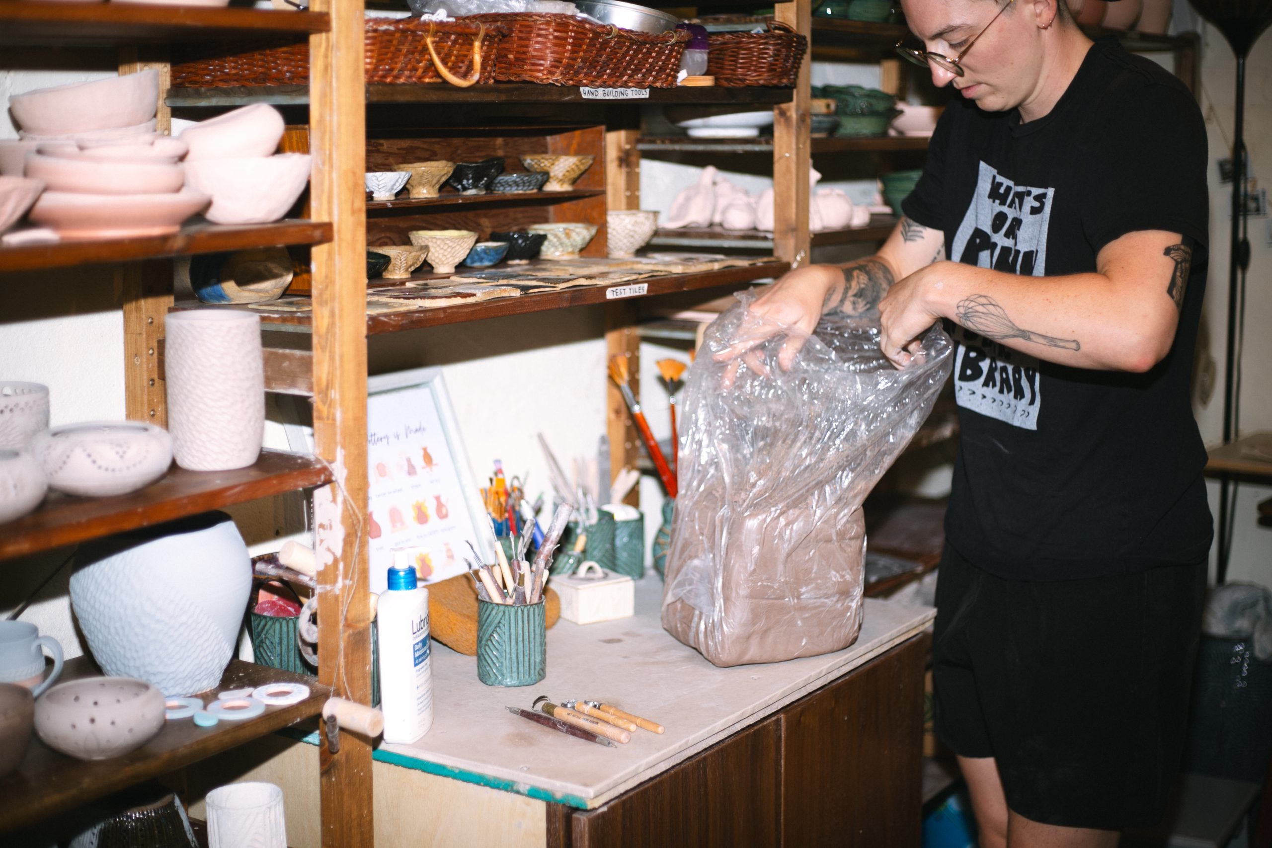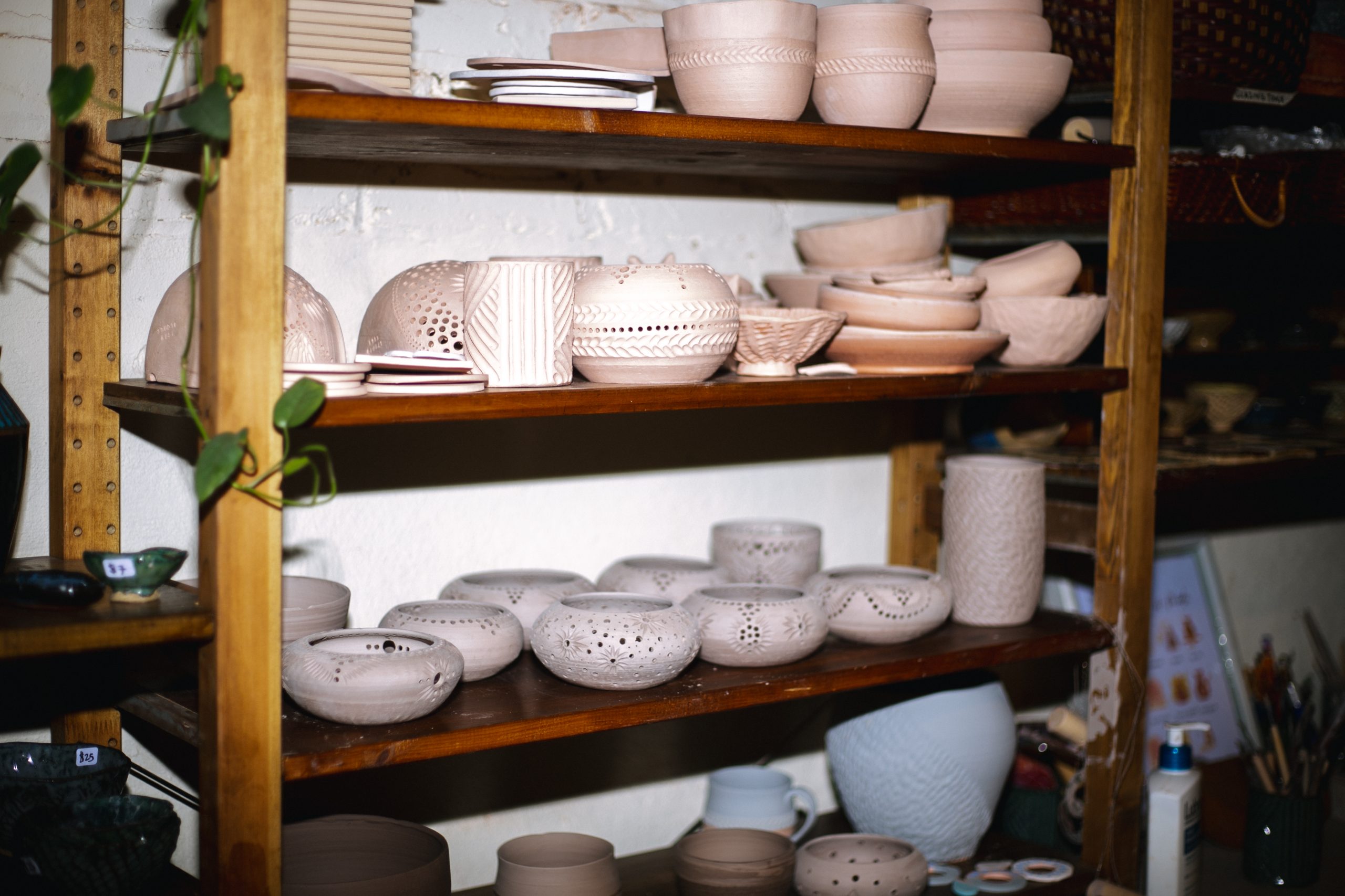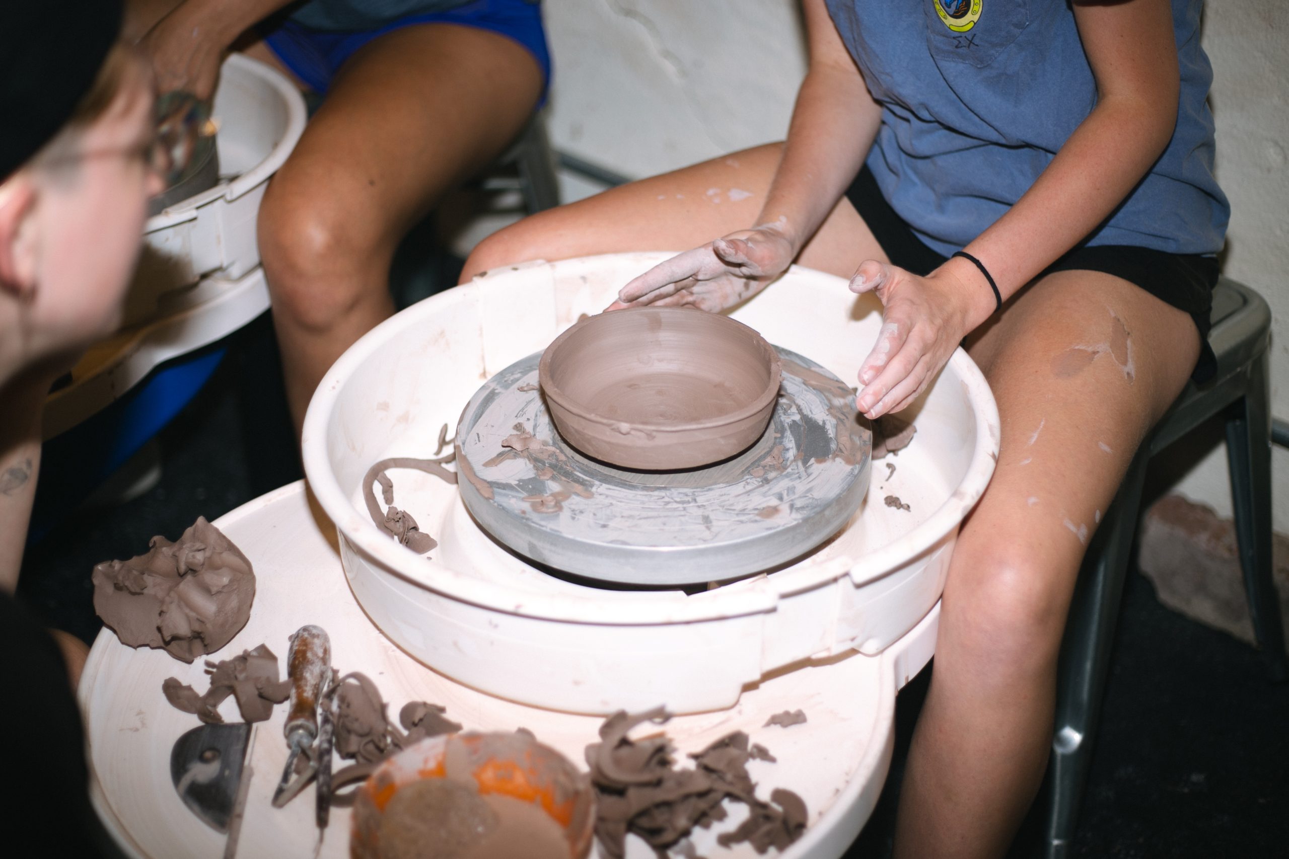 We have 4 wheels, a slab roller, a table for hand building, and a kiln! Bigger ceramic decorating events are hosted at external locations (e.g. Doubles Cafe, Lulu’s Cafe). Book a class or open studio.